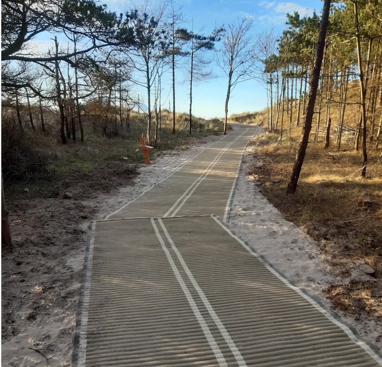 If sand accumulates on the mat it can be shaken through rather than needing to be removed off it. The frontal dune structure is protected from erosion by using a sand ladder that can also be repositioned.