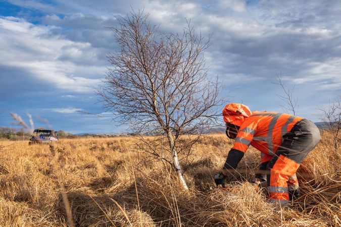 Almost 187 hectares (462 acres) of scrub scattered across Cors Caron NNR is being treated this year. This work involves cutting small trees and subsequently stem injecting the stump with approved herbicide to stop them from growing back.