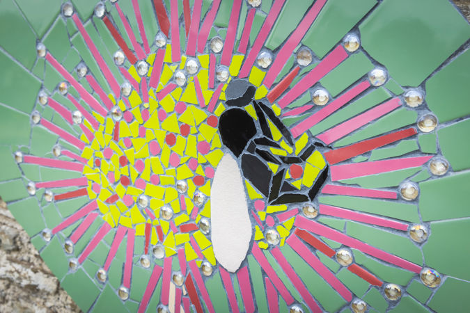 The artist, Pod Clare, worked with community groups over a month and talked to them about the project and its restoration plans. Following the talk, the groups were asked to help create the mosaic tiles, which have now been placed on the Centre for visitors to enjoy.
