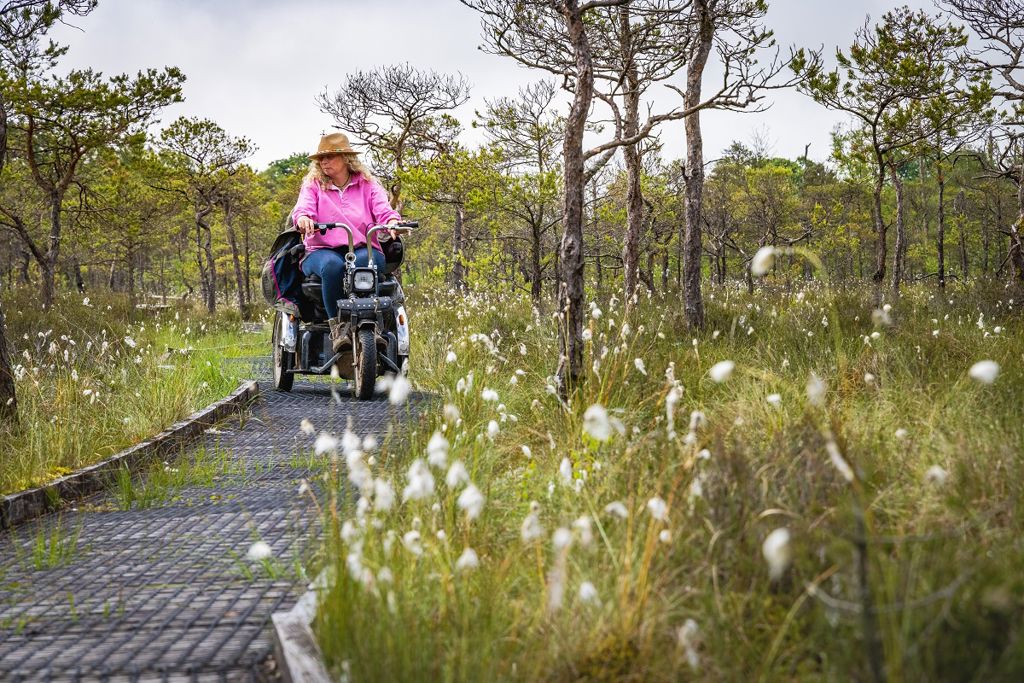Chwiliwch am y goedwig binwydd corachaidd a sylwch ar y coetiroedd corsiog ar hyd y llwybr pren.
