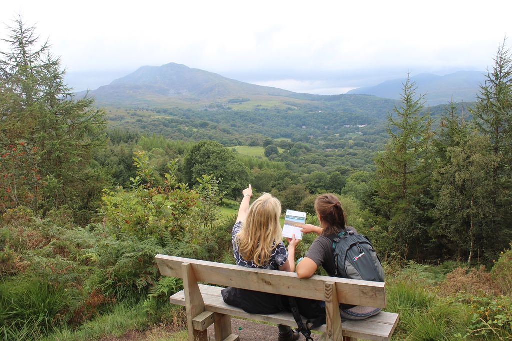 On top of a knoll, you will find a bench with a wonderful panoramic view across to Moel Siabod, the Carneddau mountains, and, on a clear day, the top of Tryfan.